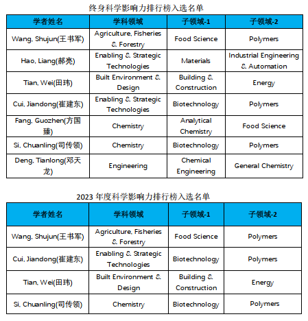 近日,美国斯坦福大学与爱思唯尔数据库(Elsevier Data Repository)联合发布了第六版《2023年全球前2%顶尖科学家榜单》,该榜单从近700万名科学家中遴选出世界排名前2%的科学家,分为22个领域和176个子领域,为科学家长期科研表现提供了一个更加客观和真实的衡量指标。该榜单分为“终身科学影响力排行榜”(关注整个学术生涯迄今的影响力)和“2023年度科学影响力排行榜”两个榜单。我校7名学者入选终身科学影响力排行榜,21名学者入选2023年度科学影响力排行榜。